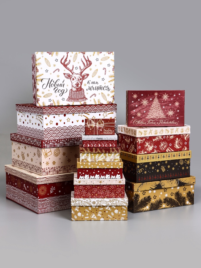 Набор коробок подарочных новогодних 14 в 1 «Изысканность», 45×35×16 - 12×7×4 см