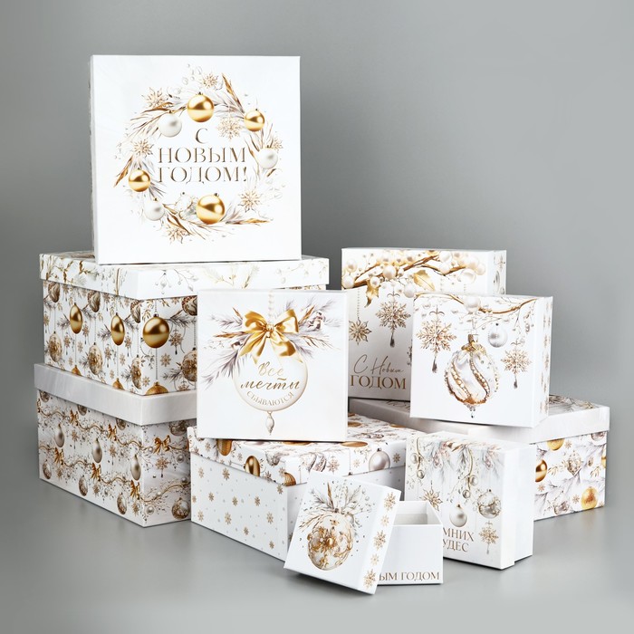 Набор новогодних подарочных коробок 10 в 1 «Белая роскошь», 10.2 х 10.2 х 6–28.2 х 28.2 х 15 см