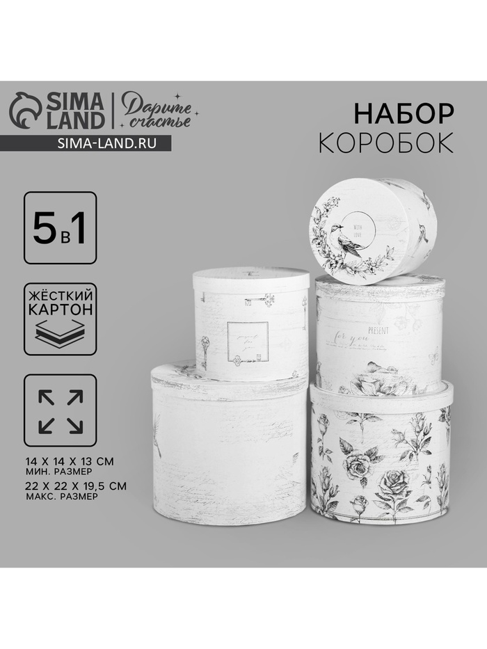 Набор коробок 5 в 1, упаковка подарочная, «Шебби», 13 х 14‒19.5 х 22 см