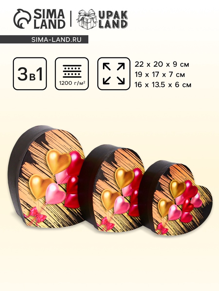 Набор подарочных коробок сердце 3 в 1, 22×20×9/19×17×7.5/16×13.5×6 см