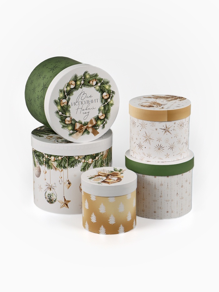 Коробки подарочные шляпные 5 в 1 «Счастливого Нового года», 20×20 — 15×15 см