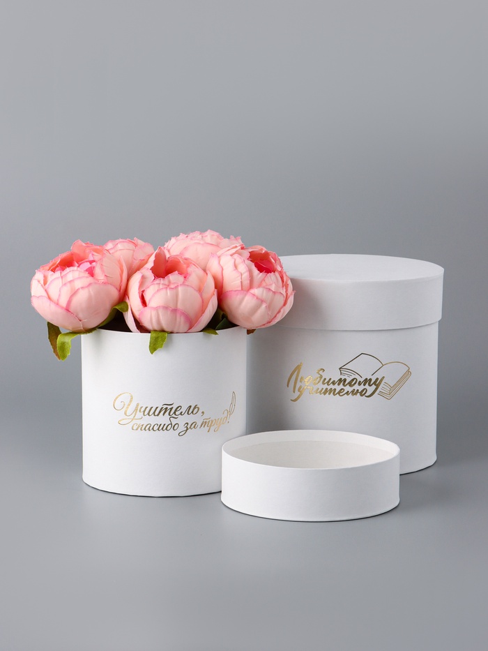 Набор круглых подарочных коробок «Учителю» , белый, 2 в 1 - 16×16 - 13×13 см