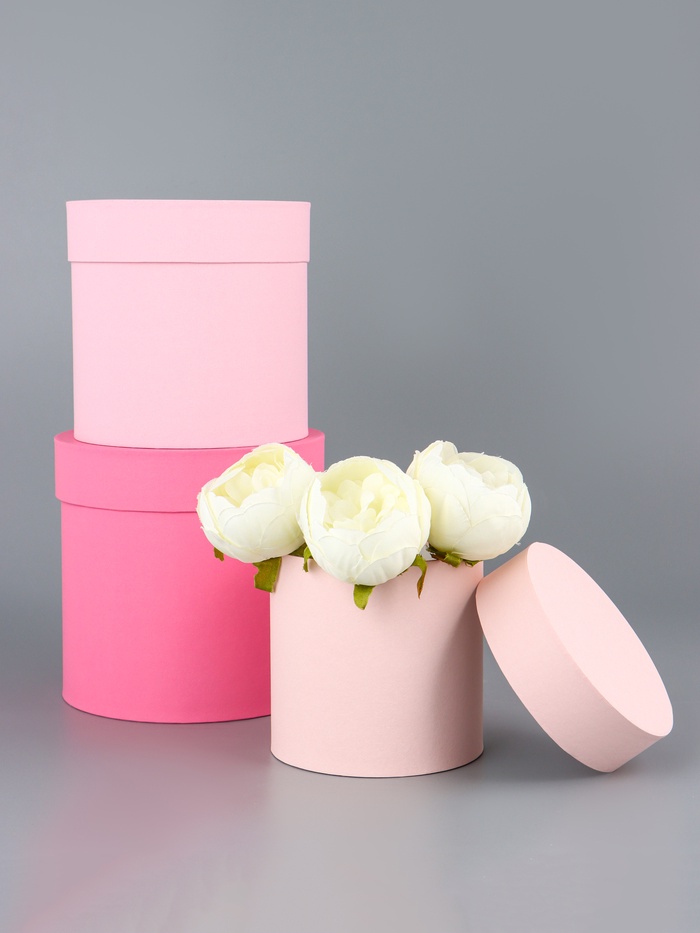 Набор круглых подарочных коробок «Пудра» 3 в 1 - 18×16×13 см