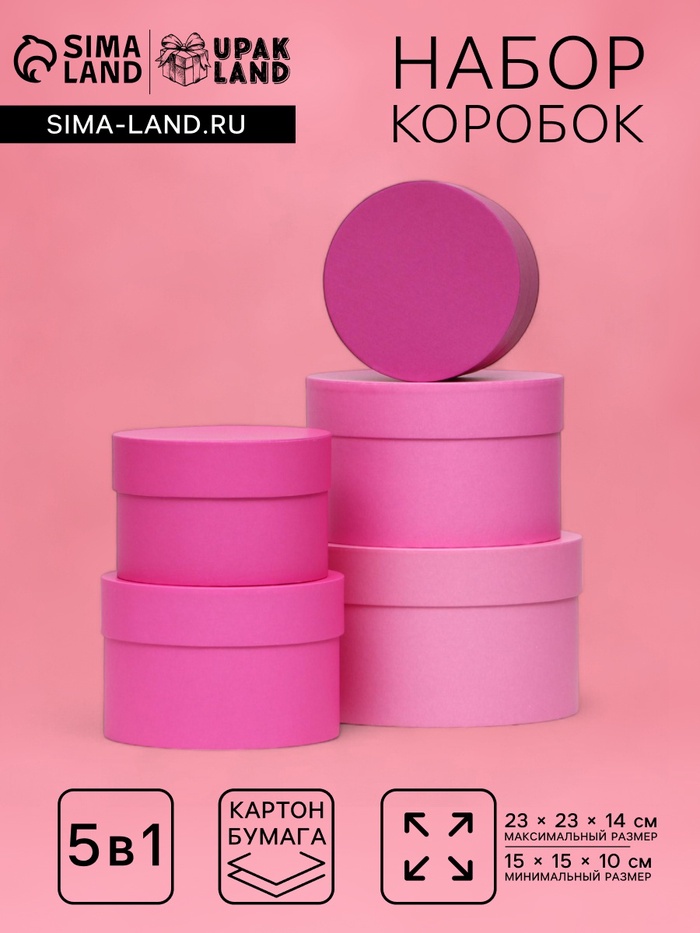 Набор круглых подарочных коробок 5 в 1 "Пантон 230 - однотонный", 23×23×14 - 15×15×10 см