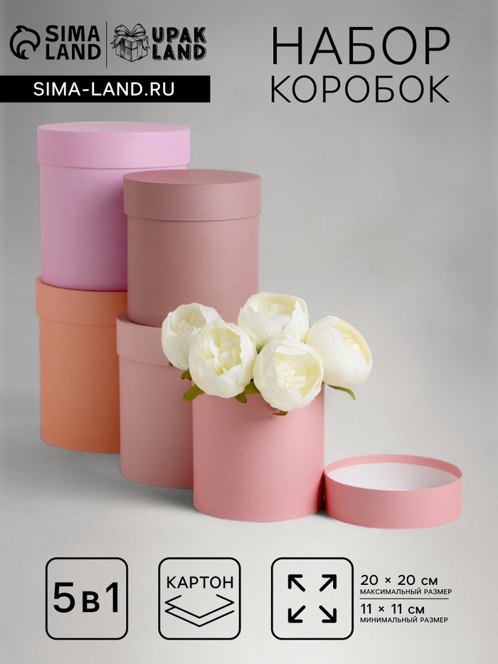 Набор шляпных подарочных коробок 5 в 1« Нежность» , 23×23 - 14×14 см