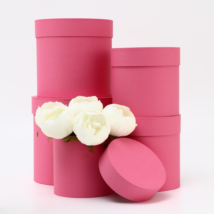 Набор шляпных коробок 5в1, розовый, 20×20 - 13×13 см