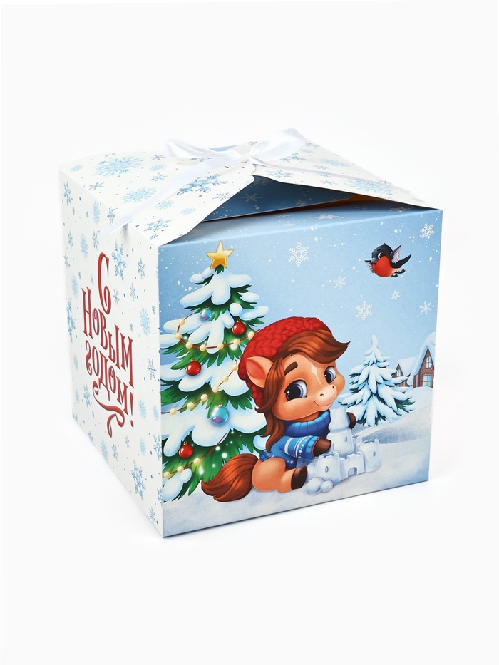 Коробка подарочная складная «Новый год 2026», лошади, 18 х 18 х 18 см