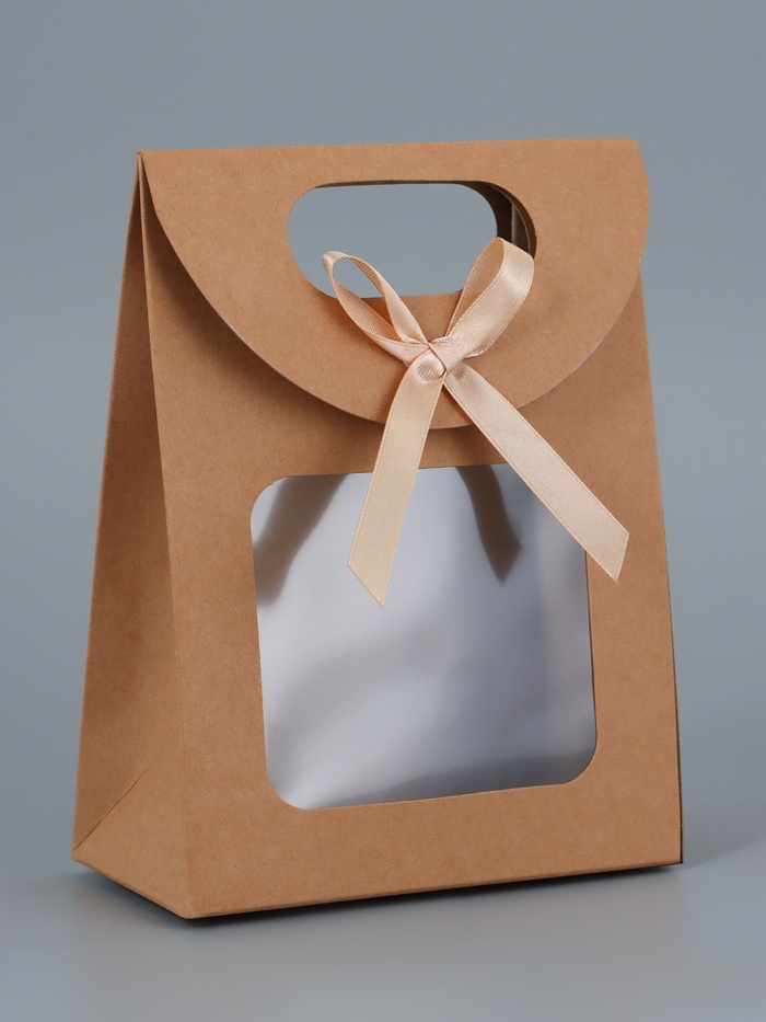 Коробка-пакет, крафтовая, с окном, 16 х 12 х 6 см