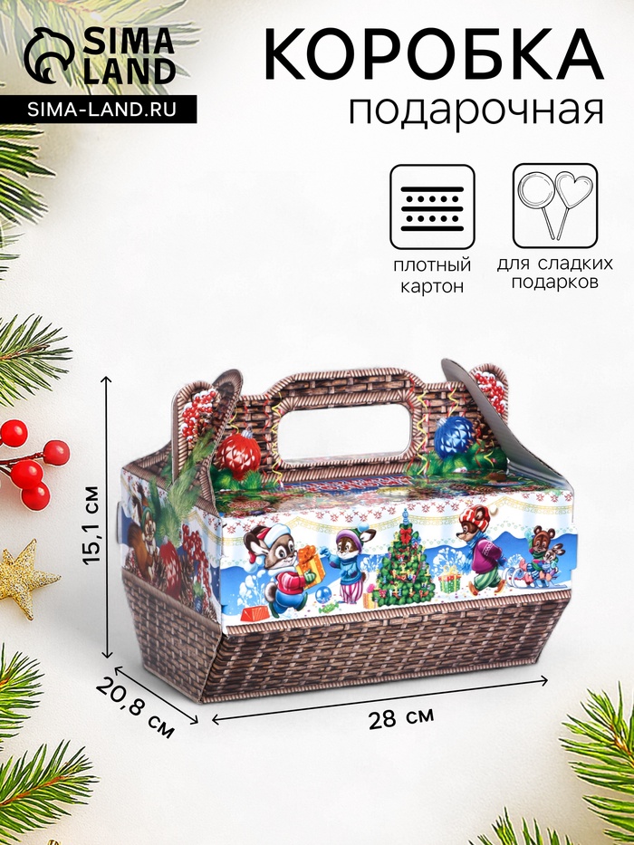 Подарочная новогодняя коробка «Лукошко» 28×15.1×20.8 см