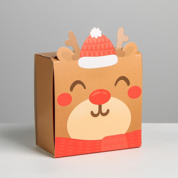 Подарочная коробка новогодняя складная «Оленёнок», 15 х 15 х 8 см, Новый год