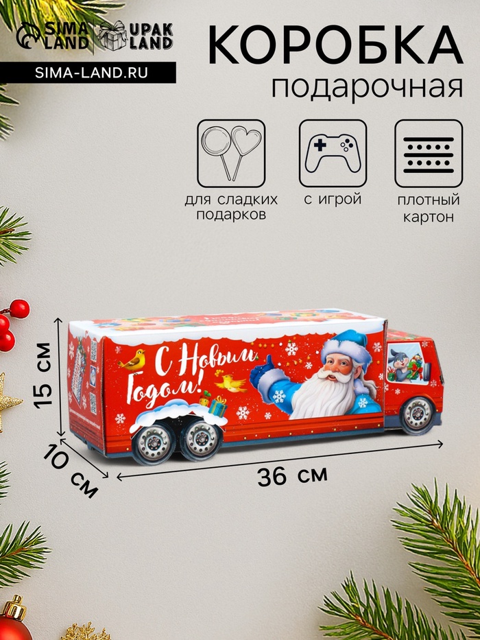 Подарочная коробка Новогодняя Фура «Везу радость» с анимацией 36×15×10 см