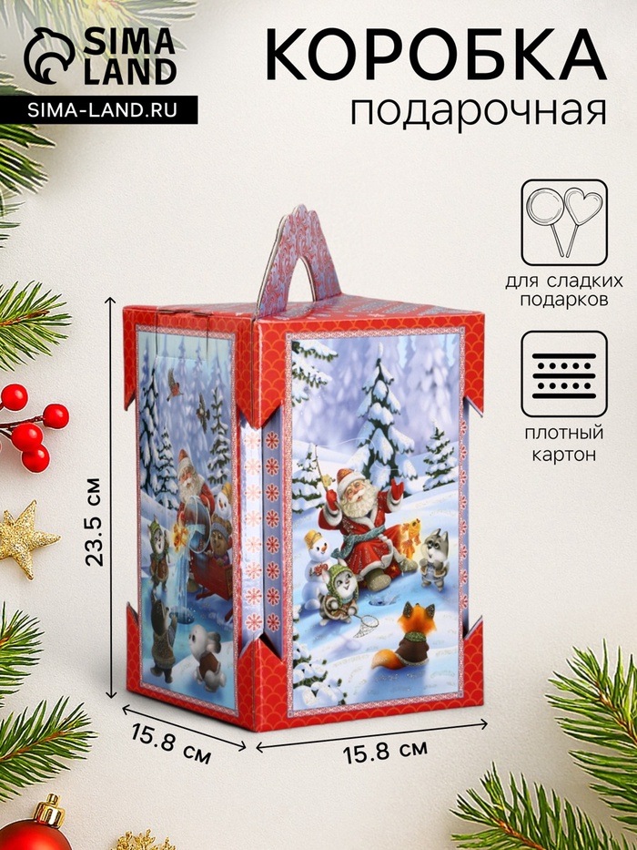 Подарочная новогодняя коробка «Новогодняя карусель», для сладких подарков, 10.6×10.6×18.8 см