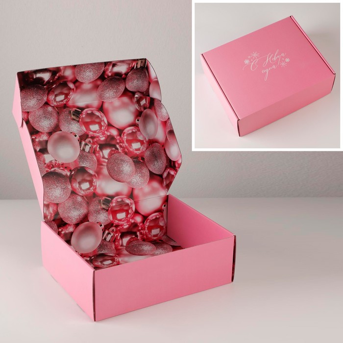 Коробка подарочная новогодняя складная «Розовый новый год», 27 х 21 х 9 см, Новый год
