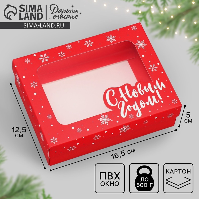 Коробка подарочная новогодняя складная «С Новым годом», красная, 16.5 х 12.5 х 5 см