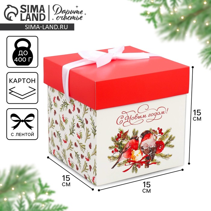 Коробка подарочная новогодняя складная «Снегири», 15 х 15 х 15 см