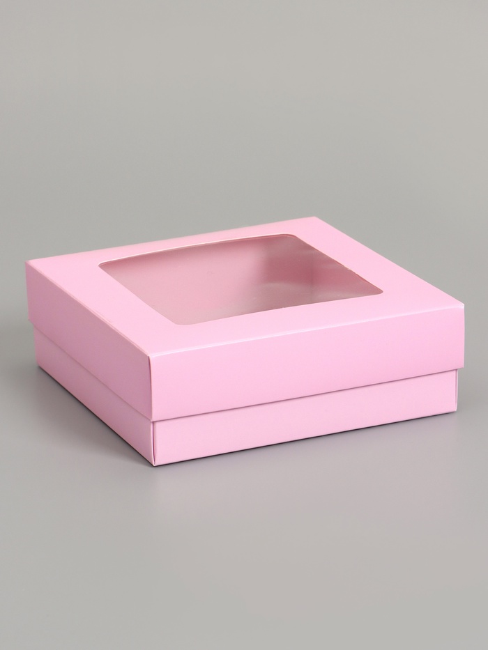 Коробка складная, крышка-дно, с окном, розовая, 15×15×5 см