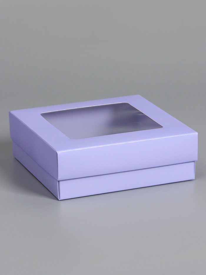 Коробка складная, крышка-дно, с окном, сиреневая, 15×15×5 см