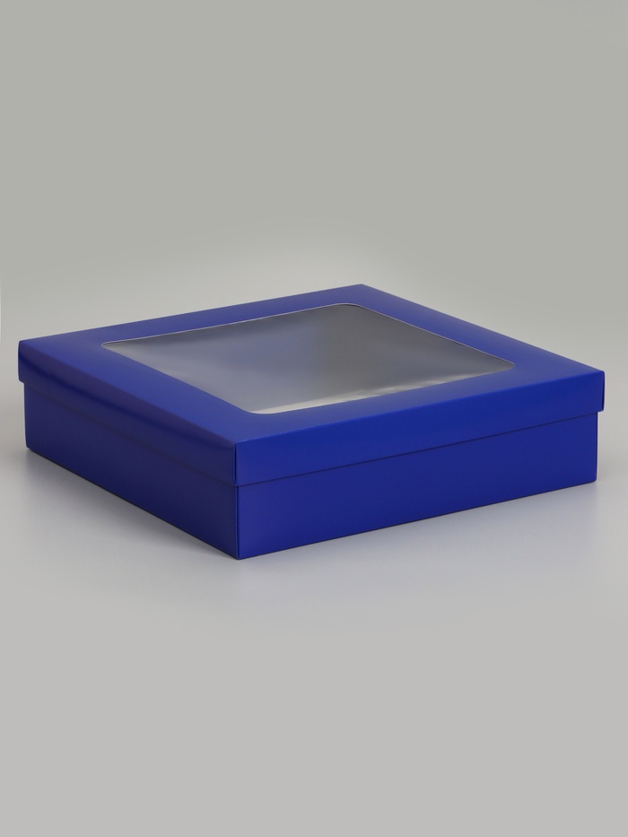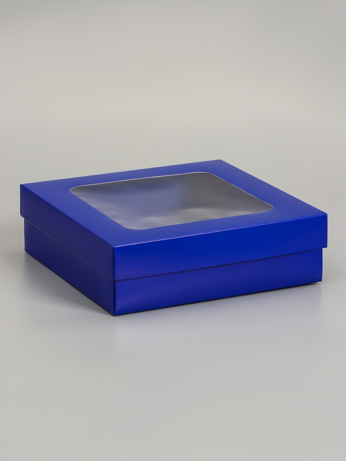 Коробка складная, крышка-дно, синяя, с окном 20×20×6 см