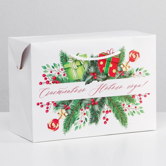 Пакет-коробка «Счастливого Нового года», 28 х 20 х 13 см
