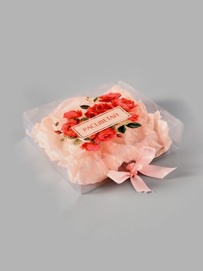 Подарочная коробка с тишью и гирляндой «Расцветай», 20 х 18 х 5 см