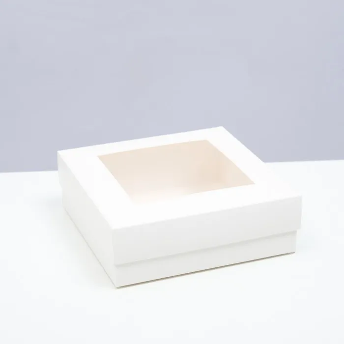 Коробка складная, крышка-дно,с окном, белая, 15 х 15 х 5 см