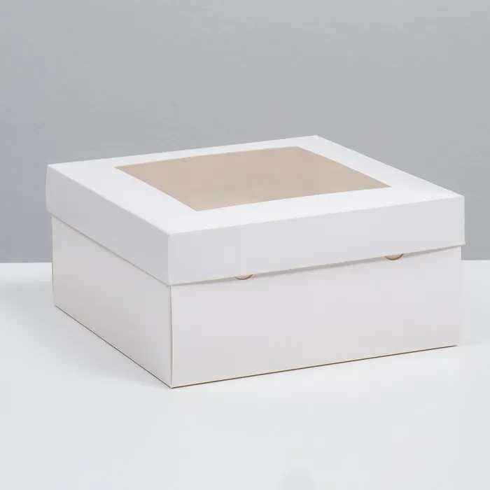 Коробка складная, крышка-дно, с окном, белая, 25×25×12 см