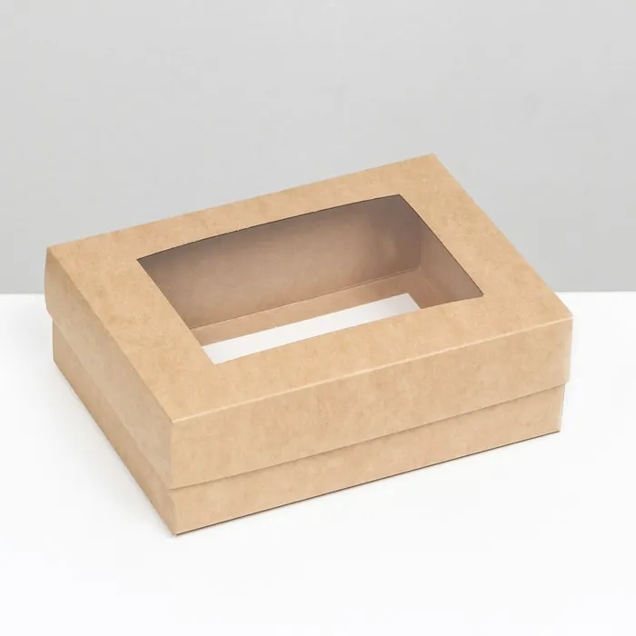 Коробка складная, крышка-дно,с окном, крафт, 21 х 15 х 7 см