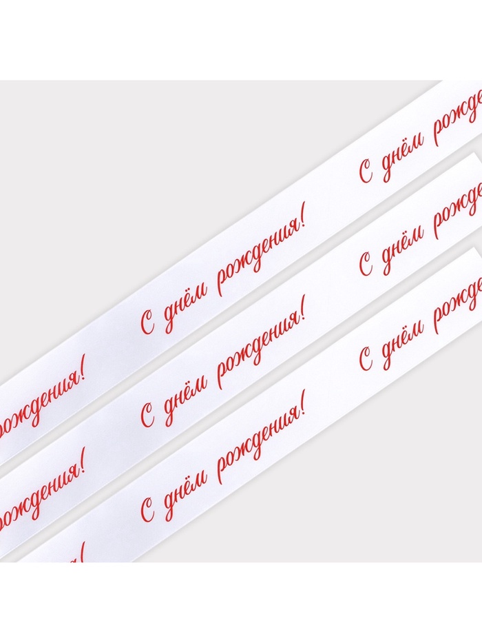 Лента атласная, подарочная упаковка, «С днем рождения!», белая, 4 см х 5 метров