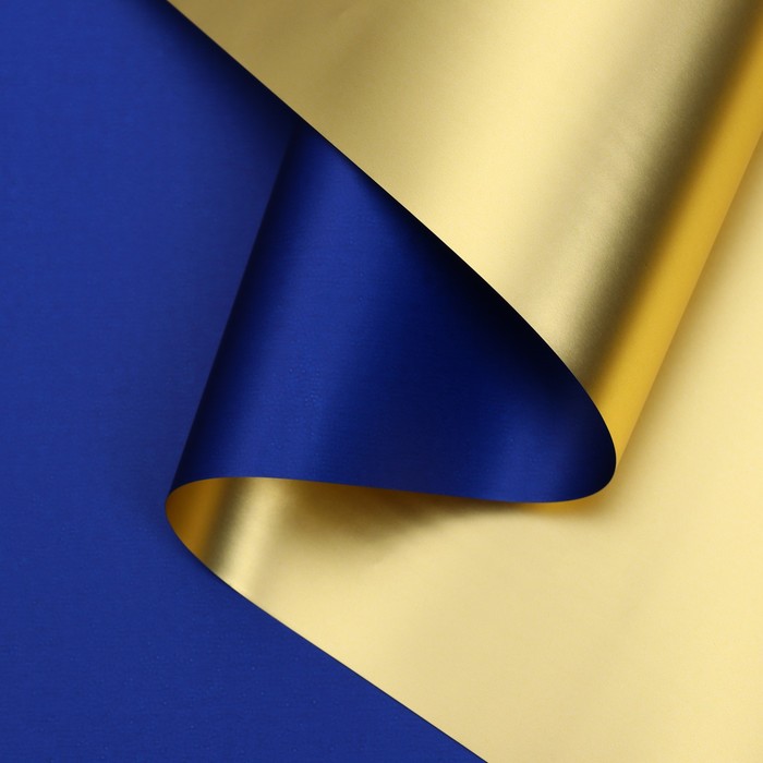 Пленка для цветов «Пленка с золотом», синяя, 58 см × 5 м