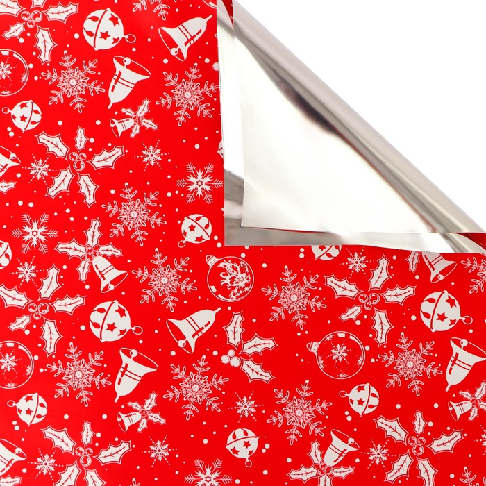Пленка упаковочная для подарков, металлизированная, 35мкм "Новогоднее ассорти“, 50х70см