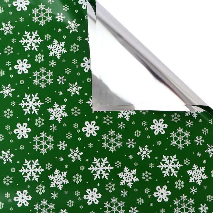 Пленка упаковочная для подарков, металлизированная, 35 мкм "Снежинки“, 50×70 см