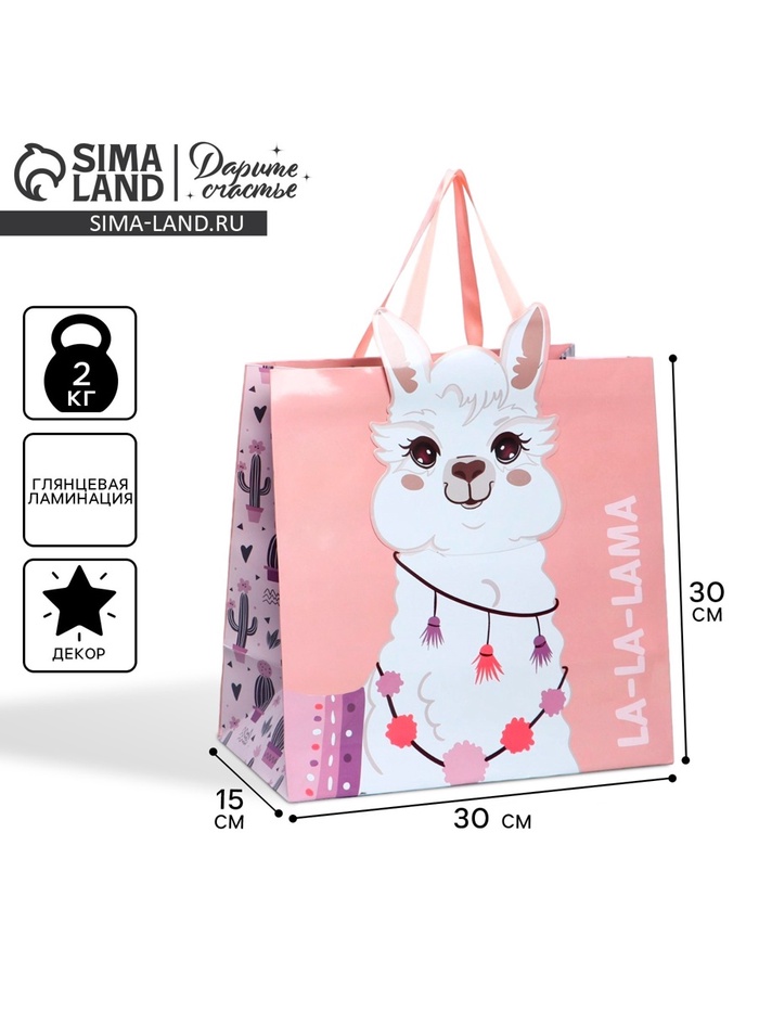 Пакет подарочный, упаковка, «Лама», 30 х 30 х 15 см