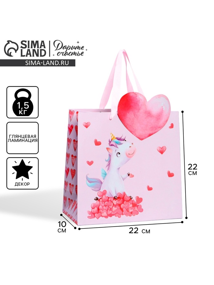 Пакет подарочный, упаковка, «Единорог», 22 х 22 х 10 см