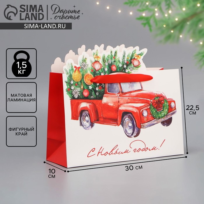 Пакет подарочный новогодний «Спешу к тебе», 30 х 25 х 10 см