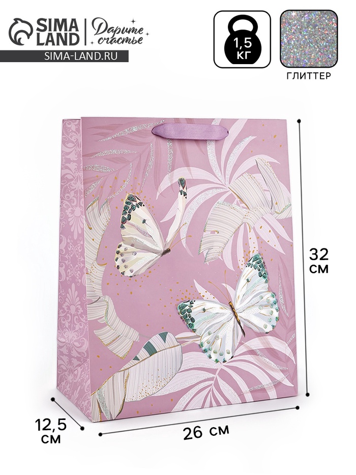 Пакет ламинированный «Цветы», глиттер, 26 х 12.5 х 32 см