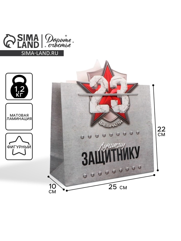 Пакет подарочный, упаковка, «С 23 февраля», 25 х 26 х 10 см