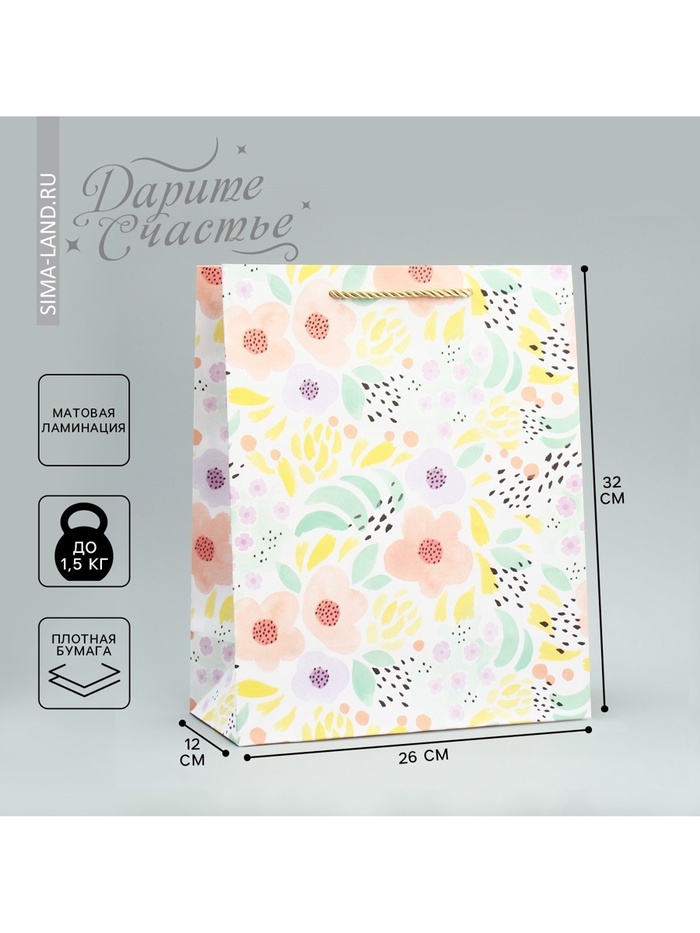 Пакет подарочный, упаковка, «Цветы» 32 х 26 х 12 см