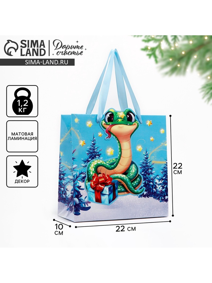 Пакет подарочный новогодний «С Новым годом!», 22×22×10 см