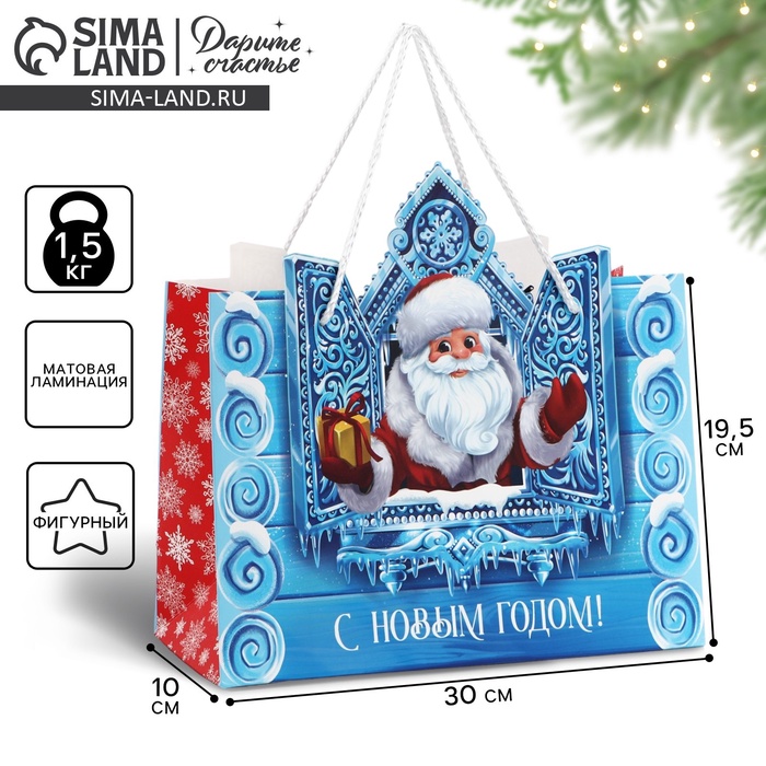 Пакет подарочный новогодний «Дедушка Мороз», 22 х 22 х 10 см
