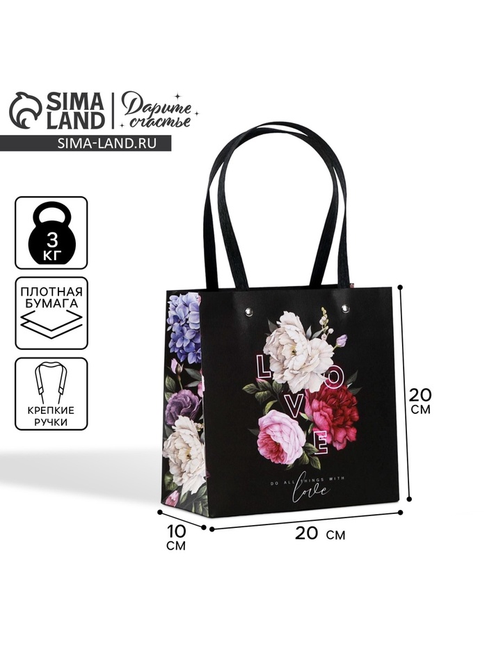 Пакет подарочный, упаковка, Love, 20 х 20 х 10 см