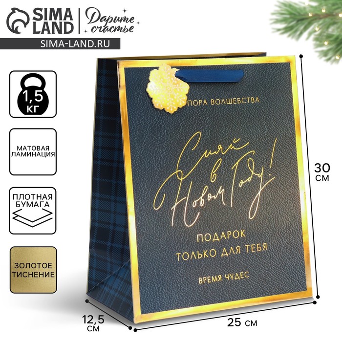 Пакет подарочный новогодний ламинированный «Сияй в Новом Году», 25 х 30.5 х12.5 см