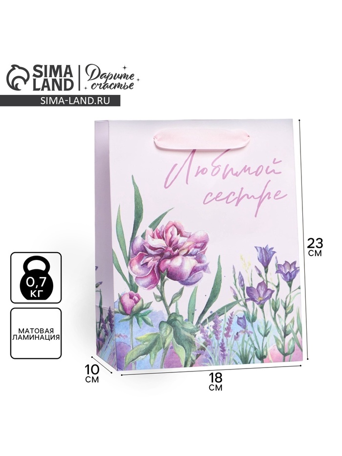 Пакет подарочный ламинированный, упаковка, «Любимой сестре», MS 18 х 23 х 10 см