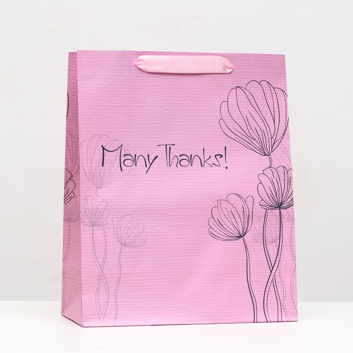 Пакет ламинированный вертильканый Many thanks, 26×32×12 см