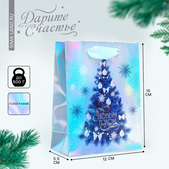 Пакет подарочный новогодний ламинированный «Счастья в Новом году», S 12 х 15 х 5.5 см