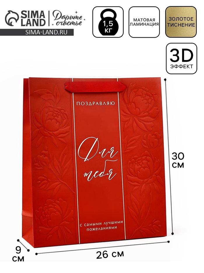 Пакет ламинированный «Для тебя», M 26 х 30 х 9 см