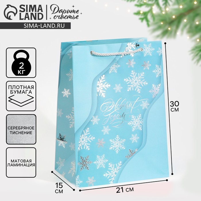 Пакет подарочный новогодний ламинированный «Лёд», 21 х 30 х 15 см