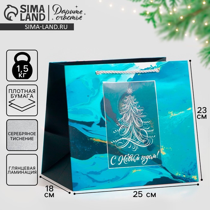 Пакет подарочный новогодний ламинированный «Мрамор», 25 х 23 х 18 см