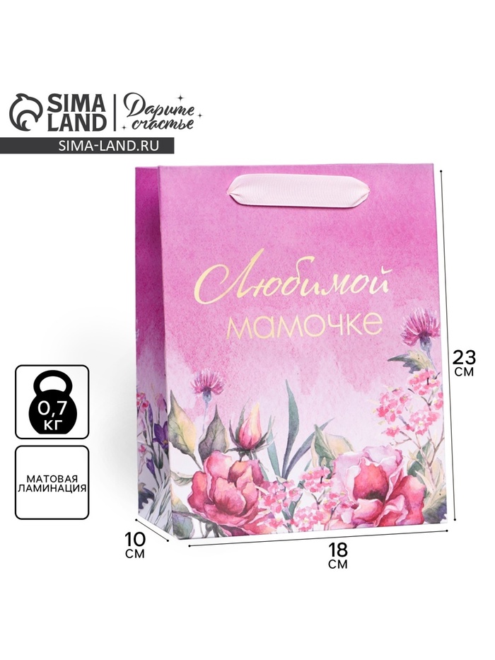 Пакет подарочный ламинированный, упаковка, «Любимой маме», MS 18 х 23 х 10 см