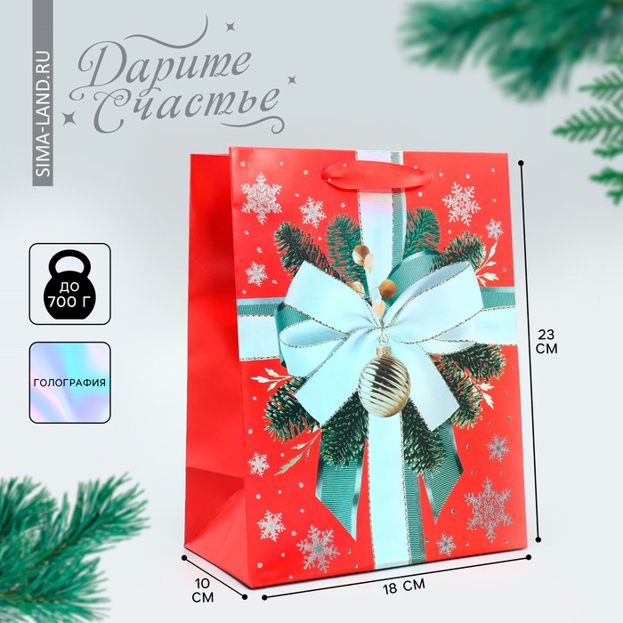 Пакет подарочный новогодний ламинированный «Новогодний бант», MS 18 х 23 х 10 см