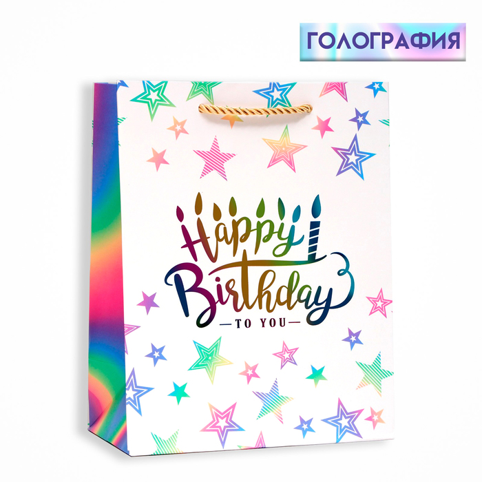 Пакет ламинированный голографический Happy Birthday, MS 18×23×10 см